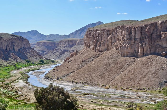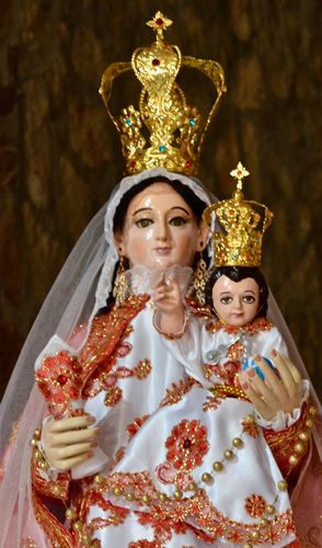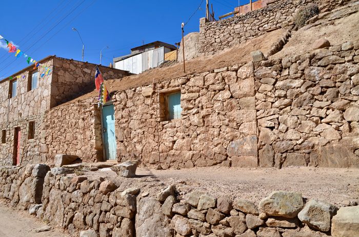 A une vingtaine de kilomètres de là, se trouve Ayquina (ou Aiquina), un village-fantôme, avec ses maisons désespérément closes. Situé à 2980 mètres d'altitude, l'endroit  est arrosé par la rivière salée (Rio Salado) qui reçoit les eaux de la rivière Toconce, au nord, et celles de la rivière Caspana au sud. Là encore, le panorama est superbe (ci-dessous) mais le petit village ne reprend vie qu'en fin de semaine ou lors de la fête de la Vierge Marie qui se tient les 7 et 8 septembre de chaque année. De quelques dizaines de personnes, la population locale passe alors à ...70000 le temps des festivités. La promenade dans les petites rues ne manque pas de charme avec ses maisons de pierre en toits de chaume. L'église, qui trône sur la place principale reste l'attraction majeure du lieu et abrite une magnifique représentation de Notre-Dame de Guadeloupe (troisième photo).