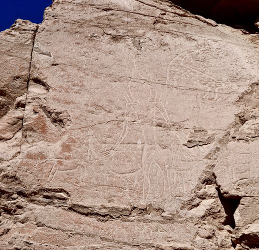 En ce qui nous concerne, nous aurons droit à une visite privée avec Jonathan qui nous montrera plusieurs pétroglyphes (comme sur la photo ci-dessous) représentant tantôt le chamane, tantôt des chevaux ou des ânes. Un art rupestre qu'on retrouve tout au long de la vallée de Lasana.