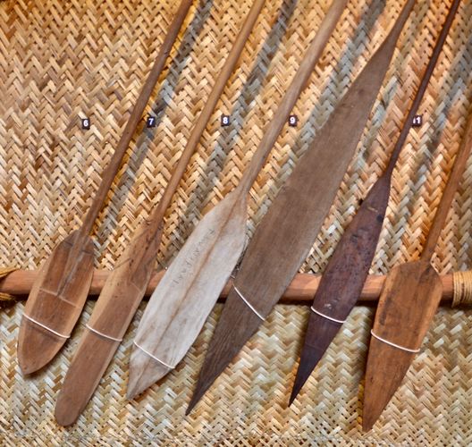 Un vaste espace offre d'observer une pirogue géante à balancier qui côtoie tout autour des embarcations plus modestes. Ici et là, des objets sont exposés dont les rames servant à manoeuvrer les pirogues (photo ci-dessous). Dans la salle voisine, je fais la connaissance d'un compatriote, Marc-Joseph Marion du Fresne, malouin comme moi, et explorateur français parti en 1772 à la recherche des Terres australes, à bord des vaisseaux Mascarin et Marquis de Castres. Après être reparti d'Australie, notre homme passera cinq semaines dans la Bay of Islands (Nouvelle-Zélande), séjour au cours duquel ses hommes entretiendront d'abord les meilleures relations avec les Maoris locaux, Ngare Raumati iwi, jusqu'à ce que l'accumulation de maladresses par les Français ne devienne trop lourde pour les Maoris et n'entraine une explosion de violence : Du Fresne et 24 de ses hommes seront tués par les Maoris tandis qu'au moins 250 Maoris seront à leur tour massacrés par les Français en signe de riposte. Cet épisode convaincra la France que la Nouvelle-Zélande était trop « imprévisible » pour être colonisable, ce qui n'empêchera pas l'envoi de futures nouvelles expéditions toujours à la recherche de la Grande terre du Sud.