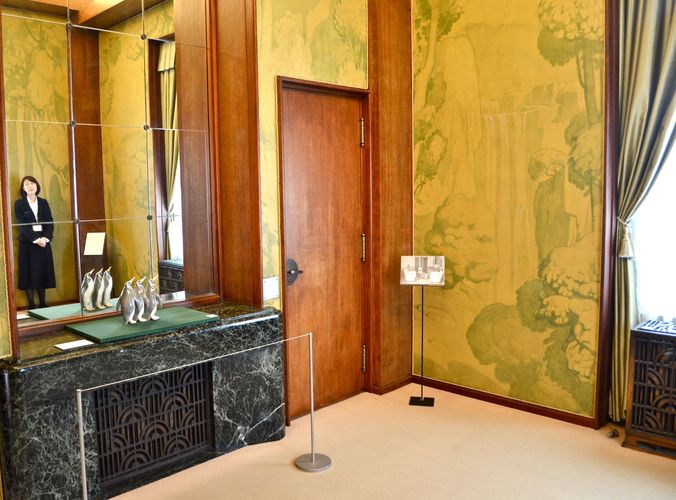 Le bureau est pour sa part formé d'une pièce carrée rendue presque ronde grâce aux étagères intégrées aux quatre coins. Une pièce qui fut occupée après la Seconde guerre mondiale par Yoshida Shigeru, ministre des Affaires étrangères et Premier ministre. Non loin de là, se trouve le salon du Prince, conçu par Henri Rapin. Son haut plafond offre une sensation d'espace tandis que les colonnes en bois de cyprès et une cheminée en marbre donnent à l'ensemble une impression de raffinement.
