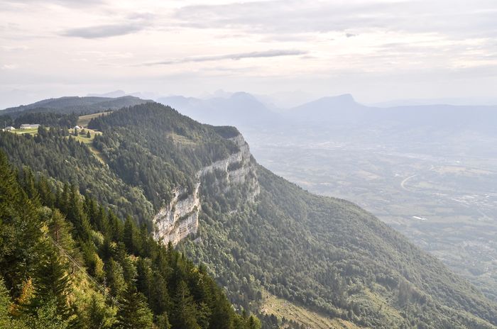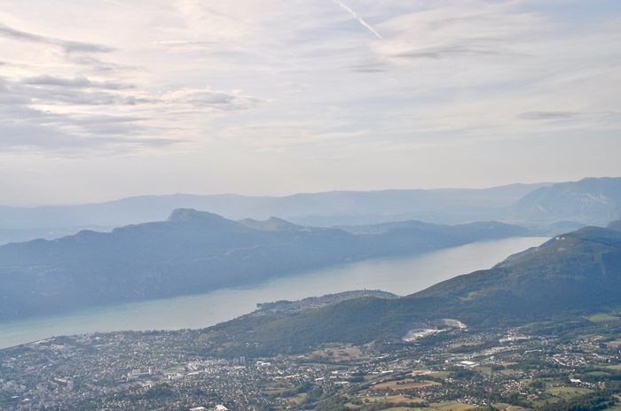 Je file maintenant en direction du Mont Revard, qui culmine à 1562 mètres dans les contreforts septentrionaux du massif des Bauges et domine ainsi la région d'Aix les Bains et le lac du Bourget (ci-dessous). Pour vous y rendre, il suffit de toujours suivre la direction du Revard, puis, du Belvédère du Revard. L'histoire de ce mont est étroitement liée à celle d'Aix les Bains et aux nombreuses personnalités qui fréquentèrent la cité thermale dans le passé et gravirent ce sommet à la vue exceptionnelle. Sommet de moyenne montagne, le mont et son belvédère se dressent à 1538 mètres d'altitude, offrant par beau temps une vue magnifique sur les chaines montagneuses du Dauphiné, du Jura et du Mont Blanc.