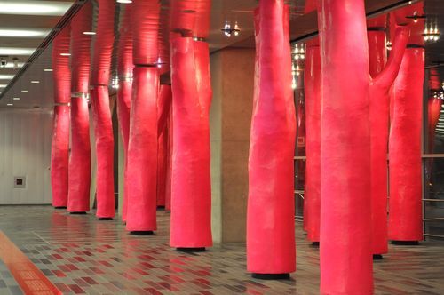 Je m'arrête quelques instants au Palais des Congrès de Montréal: Centre de conférences et d'expositions, situé au nord du Vieux Montréal, il figure au palmarès des 1001 merveilles merveilles qu'il faut avoir vu dans sa vie selon Mark Irving et François Barré. Le Palais ouvre ses portes en 1983, d'après les plans de l'architecte Victor Prus. Il est relié au métro Place d'Armes et à la ville souterraine de Montréal. A l'intérieur je remarque le Passage du Palais des Congrès et ses sculptures faites de troncs d'arbres.