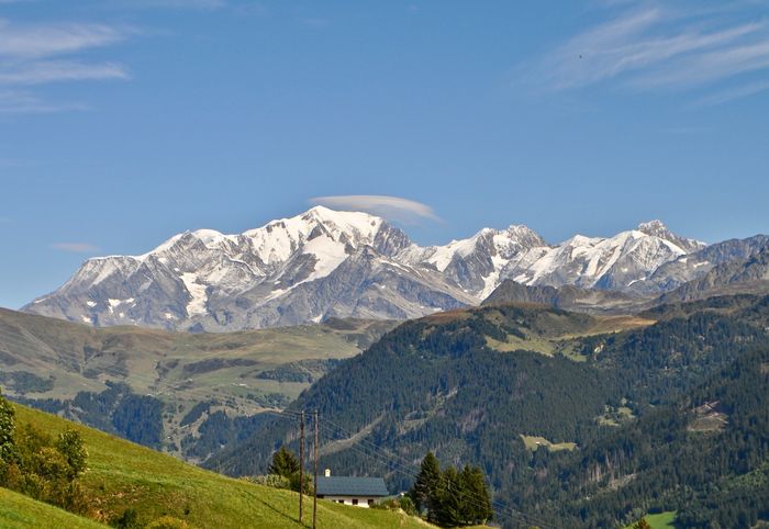 Sur ma route, je croiserai de très beaux paysages de montagne que j'arriverai à photographier sur les rares espaces de stationnement offerts par la petite route empruntée. J'apercevrai aussi le Mont Blanc au loin. Les Ceutrons (peuple gaulois des Alpes) occuperont le val d'Arly durant l'Antiquité, jusqu'à l'an 20 avant J.C, date de l'arrivéee des Romains. Le Moyen Âge, lui, verra le partage de la vallée entre les seigneurs de Savoie et ceux de Faucigny (qui deviendront les maitres de Flumet et du haut val d'Arly au 13è siècle).