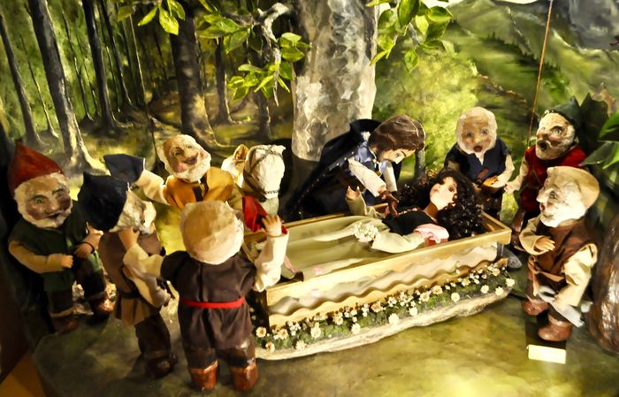 Daniel Breyton (interrogé dans ma vidéo), son épouse Edith et leurs deux filles, Lise et Claudine, tous animés par la passion des contes de fées et des créations manuelles, ont voulu transmettre ces contes au travers de scénettes peuplées de personnages féériques pour faire rêver les petits et les grands. Ici, les contes traditionnels sont à l'honneur : Cendrillon, Blanche-Neige et les sept Nains, le petit Chaperon rouge, ou les Trois petits cochons...Chez les Breyton, on travaille en famille et chacun joue son rôle : Daniel fabrique les structures en bois qui supportent les scénettes, tandis qu'Edith et les filles s'exercent à la création manuelle des personnages et des décors en pâte à papier, avec toutefois chacune sa spécialité. Edith se consacre tout particulièrement à la peinture des paysages, aux décors et à la création des costumes des personnages. Lise, elle, anime et met en mouvement les personnages, pendant que Claudine se charge de l'animation musicale, de la décoration, des recherches et des expositions murales sur le thème des contes de fées. La Maison des Contes de Fées vit le jour en 2005 et est l'aboutissement de quinze années de travail et de générosité, et encore bien des projets à venir ! Quoi de plus beau qu'une passion (j'en sais quelque chose) ?