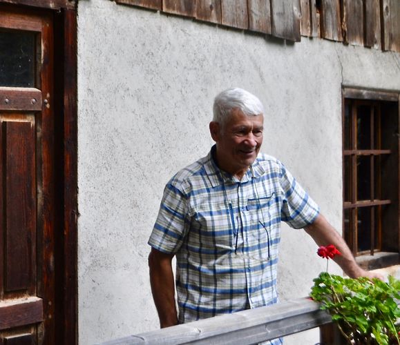 En bas du pont des Abymes, du haut duquel quelques personnes se jetèrent dans le passé pour mettre fin à leurs jours, coule l'Arly, qui possédait jadis une passerelle en bois permettant aux habitants de se rendre de Flumet à Notre-Dame de Bellecombe. Un peu plus haut, avant le pont, un barrage sera édifié afin de créer une retenue d'eau destinée à alimenter en énergie hydroélectrique les turbines du vieux moulin à Tienne. Celui-ci servira tour à tour de huilerie et de meunerie, comme me le soulignera Jean Ouvrier-Buffet, le Président de l'association du Moulin « à Tienne » (ci-dessous en photo), qui a eu la gentillesse de m'ouvrir exceptionnellement les portes de cet endroit chargé d'histoire. Ce moulin, dont on signale déjà la trace à son emplacement actuel dans la mappe sarde de 1730, est une ancienne propriété seigneuriale placée sur l'ancien chemin reliant Flumet à Notre-Dame de Bellecombe. Acheté en 1820 par la famille Mongellaz, « Tienne »(deuxième photo ci-dessus) comme on le surnomme ici, en sera le dernier meunier puisque le moulin cessera de fonctionner en 1973 au décès de ce dernier. Le moulin, alimenté en eau par un canal appelé « bédière » faisait tourner ses trois meules ainsi qu'une pierre servant à produire du cidre et de l'huile de frêne (un bon médicament pour les bêtes malades!) grâce à trois turbines alimentées en énergie hydro-électrique. Un tel héritage ne pouvait tout bonnement pas disparaître du patrimoine local et des bénévoles s'attelèrent donc à restaurer le moulin à Tienne d'une part, et la Maison du Meunier abritée dans la plus ancienne maison à galerie de bois du village, le tout avec l'appui de la municipalité.