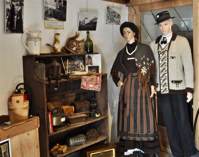 Jean et moi remontons le chemin pentu depuis le moulin pour rejoindre le village et nous rendre à la meunerie. Comme je vous le disais, cette maison de meunier est l'une des plus anciennes demeures du village, à la façade surprenante, ornée de deux pilastres peints en trompe l'oeil. On peut encore y trouver les deux anneaux qui étaient utilisés autrefois pour attacher les bêtes. Côté rue, une porte en bois permet de pénétrer « discrètement » dans un estaminet (bar) aménagé dans la maison, pour y déguster la soupe de bûcheron (une soupe savoyarde et consistante, faite de légumes et de lard). Cet estaminet était l'endroit où les hommes se restauraient en attendant leur livraison de farine. La maison cache bien des trésors à l'intérieur de ses salles d'exposition : reconstitution d'un intérieur savoyard, d'une chambre, collection de vêtements locaux, photos du vieux Flumet et exposition de machines agricoles...La première salle, elle, présente le monte-charge qui fut installé pour relier le moulin et éviter de descendre le grain puis remonter la farine à dos d'homme sur un sentier aussi abrupt. Nos anciens étaient décidément astucieux.