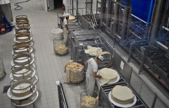 Beaufort sera ma prochaine étape : principale localité du Beaufortain, ce village, dont le nom signifie « endroit fortifié », est situé au cœur du massif du même nom et est connu pour sa coopérative laitière, née dans les années 1950 afin de sauver le territoire de l'exode rural. Et l'entreprise de fabriquer le Beaufort, un fromage au lait cru et entier à pâte pressée cuite (ci-dessous), dont chaque meule pèse environ 40 kg et offre une pâte lisse de couleur ivoire. Ce fromage est fait exclusivement à partir du lait de vaches Tarine et Abondance et peut être acheté à la boutique sur place. Structure collective, la coopérative regroupe 184 agriculteurs qui confient leur lait pour le transformer en fromage et gèrent eux-mêmes la structure. Des visites libres et gratuites sont disponibles toute l'année.