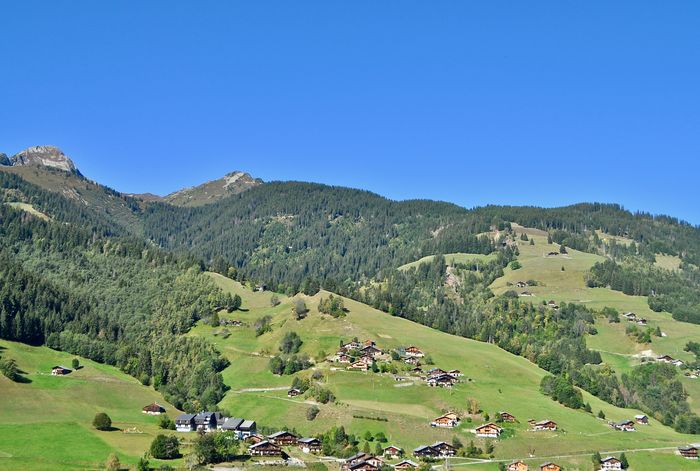 Le Beaufortain est un pays paradoxal car il est à la fois fermé (par ses gorges profondes inhospitalières au sud) et ouvert (avec les cols permettant de communiquer avec la Tarentaise, le Val d'Arly et le Faucigny à l'est et à l'ouest) aux influences extérieures. Il est traversé par trois cours d'eau principaux, le Dorinet, le Doron et l'Argentine, qui se rejoignent à Beaufort, le chef-lieu de canton. L'implantation humaine qui en résulte fut déterminée par les conditions climatiques et par le relief. Le Mont-Blanc et sa fraicheur sont favorables à l'exploitation forestière et à l'élevage. J'y croiserai d'ailleurs de nombreux troupeaux de vaches paissant en toute quiétude. La véritable histoire de l'endroit, elle, débute au Moyen-Âge dans un site privilégié, le col de la Forclaz (passage le plus aisé vers la Combe de Savoie) merveilleux belvédère permettant de contrôler les passages venant de Faucigny et de Tarentaise.
