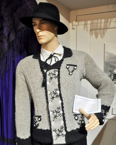 Je débute ma visite par Hauteluce, village de montagne perché à 1150 mètres et désert à l'heure de midi. L'endroit possède une station de sports d'hiver qui entraine une forte affluence dès le mois de décembre. L'écomusée du bourg, habituellement fermé à cette époque de l'année a rouvert exceptionnellement ses portes pour moi grâce à gentillesse d'Anne-Cécile. Je découvrirai ainsi plusieurs salles représentant des scènes de la vie locale, avec présentation d'objets anciens, ou de vieilles machines qui témoignent de l'ingéniosité des habitants de jadis. Ce musée est un témoignage direct du patrimoine et de la culture de Hauteluce mais également de tout une vallée où l'on élevait la race ovine rustique de Thônes et Marthod pour la qualité de sa laine, à la couleur naturelle écrue ou beige. Une laine qui deviendra maille (ci-dessous), ce gilet porté par les hommes dans le Val d'Arly, à Megève et dans une partie du Beaufortain. Cette maille (gilet) proviendrait de Suisse, notamment des Fribourgeois et des Valaisans. Et ce vêtement d'avoir été importé par les fromagers suisses nombreux autrefois dans les alpages alentours.