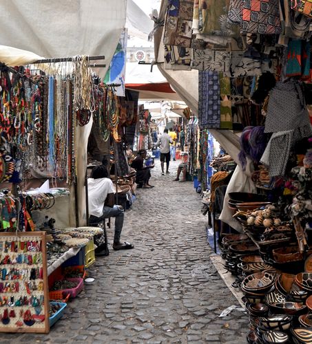 Je vous le disais plus haut, Cape Town s'est développée entre l'imposante Table Mountain (formant une sorte d'amphithéâtre) et l'océan Atlantique. Appelée « la Cité Mère », en raison de son rôle historique dans le développement de l'Afrique du Sud moderne, Le Cap et ses plages de sable doré s'étendent au pied de l'envoutante Montagne de la Table (Table Mountain) et la cité a su pleinement profiter de son titre de Capitale mondiale du design en 2014 pour se transformer et élever sensiblement le niveau de vie de ses habitants. L'architecture s'exprime ici de mille façons : façades aux tons éclatants à Bo Kaap, cabines de bains originales à Muizenberg, Street Art et décors Afro chic des guest-houses, ou édifices victoriens de City Bowl. Pour aujourd'hui, je me contenterai de tâter le terrain et d'en évaluer les risques. Appareil-photos autour du cou, carnet de notes à la main et sac à dos sur moi, je demande à cousin Uber de me déposer au Green Market Square (ci-dessous), haut-lieu de l'artisanat local devenu depuis monument national pour certains. La place en question sur laquelle se dresse encore l'ancienne mairie (deuxième photo) accueillit jadis, c'est à dire dès 1806, un marché alimentaire avant de laisser désormais la place à l'artisanat local.