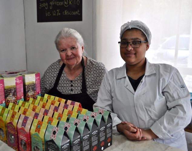 Juste à côté de mon hôtel Granary Petite, se trouve la dernière étape de mon circuit gourmand du jour : Darling Sweet. Ce palais des délices a été créé par deux amis, Frits van Ryneveld et Hentie van der Merwe, l'un passionné d'art et de gastronomie et l'autre, féru de qualité et de design. Bref, le couple parfait pour monter cette enseigne à succès dont tout le monde parle ici. L'idée consiste alors à fabriquer des toffees traditionnels en utilisant le délicieux beurre local de Darling. Des gourmandises sans colorants, ni arômes artificiels ni conservateurs, comme me le confiera la charmante Annette van Ryneveld dans mon interview. Autre facteur non négligeable, Darling Sweet emploie 21 salariées à temps plein et onze autres à temps partiel, encore une raison supplémentaire pour venir encourager nos jeunes patrons qui n'ont pas froid aux yeux. A l'intérieur de la boutique, j'admirerai le côté attrayant et vendeur des emballages, et aussi, chose plus inattendue chez un confiseur, la petite salle d'exposition jouxtant le magasin qui offre au public d'admirer quelques jolies toiles de peintres sud-africains. Une façon de nourrir à la fois le corps et l'esprit...
