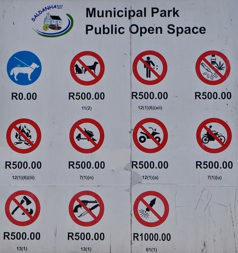 Avant de rallier Clanwilliam, ma prochaine étape, je fais ce matin un détour par le village de Paternoster, à 35 minutes de route depuis Langebaan. Ce charmant endroit est un ancien village de pêcheurs converti depuis quelques années au tourisme. Les enfants-mendiants qui fondent sur vous comme des guêpes sur un pot de miel, pour vous vendre leurs horribles guirlandes de coquillages l'ont bien compris. Pour ces gamins dont la place est à l'école, nous ne sommes qu'un porte-monnaie ambulant, un marchand de blé ou d'oseille, un distributeur de thune, de pognon, de picaillons et de biftons. Mais que font ces gosses dans la rue en pleine journée ? La municipalité, il est vrai, les encourage implicitement puisque parmi les choses interdites inscrites sur un panneau (ci-dessous), la mendicité n'y figure pas. Tolérance, quand tu nous tiens...