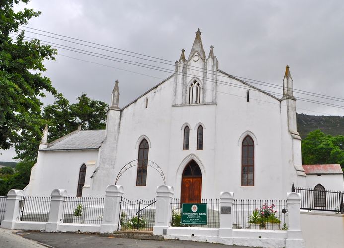 C'est le style vernaculaire qui caractérise l'église Strooidakkerk (ci-dessous) avec ses pignons gracieux et sa simple croix. L'édifice a été construit par un ingénieur militaire allemand, la Major Georg ConradKuchler. L'intérieur austère, lui, reflète bien le calvinisme de l'église réformée hollandaise. Quant au clocher, il est de style néo-classique et date de 1811. Et le style vernaculaire dans tout cela ? C'est une architecture traditionnelle qui se transmet de génération en génération, de bouche à oreille et à tout niveau de la société. La Mairie de Paarl a été bâtie dans ce même style par l'architecte Wynand Louw, agrémentée toutefois d'une frise, œuvre d'un célèbre artiste sud-africain, Hugo Naude.