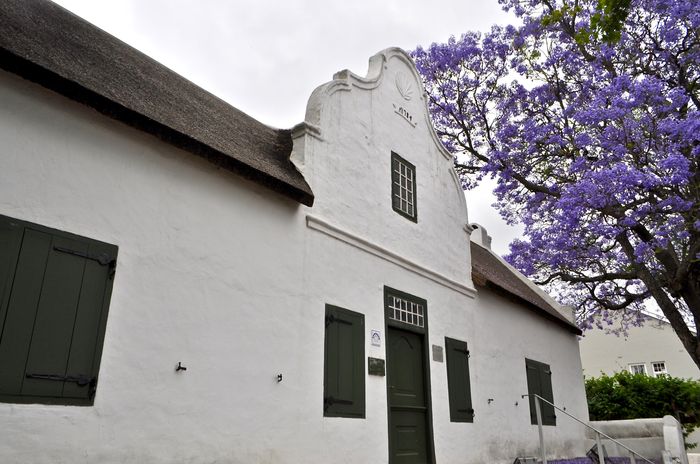Décidément, il me faudra revenir pour poursuivre cette passionnante visite patrimoniale en compagnie d'Hybré. Notre parcours s'achève à l'office de tourisme de la ville, qui a trouvé refuge au N°210 de Main Road (ci-dessous). Il s'agit là d'une superbe demeure de style Cape Dutch, datant du 18è siècle, avec sa double-porte au milieu d'une façade dénudée ce qui lui donne encore plus de charme. Autrefois propriété de S.P.Jordan, petit-fils du huguenot Jean Jourdan, cette maison fut restaurée en 1982 par la municipalité et sert désormais de lieu d'archivage pour les documents historiques de la ville.