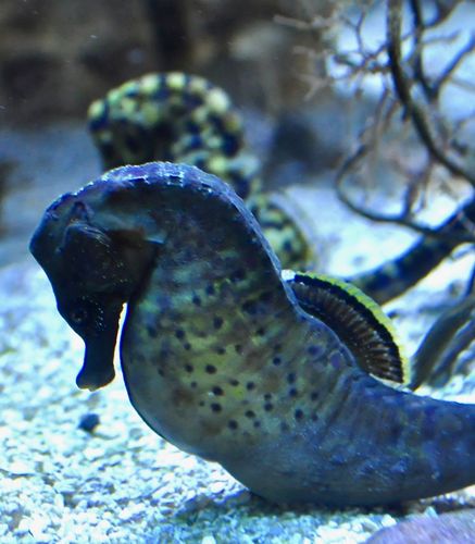 Si vous voulez tout savoir sur l'hippocampe, je vous conseille de vous rendre sur le parking situé en face du Garden Route National Park. Là, un panneau nous explique qu'il existe trente espèces d'hippocampes à travers le monde, dont la grande majorité survit en milieu marin. Les eaux sud-africaines en abritent déjà cinq espèces, dont l'hippocampe endémique Hippocampus capensis qui fréquente uniquement les estuaires de Knysna, Keurboom et Swartvlei où ils se nourrissent de manière adéquate. L'hippocampe de Knysna, lui, est directement menacé d'extinction et des tentatives de reproduction par élevage sont actuellement tentées. Chose curieuse chez cet animal, le mâle vit chez son épouse, ne possédant qu'un petit chez-soi à l'intérieur du vaste territoire détenu par la femelle. Le moment venu, et à l'issue d'une danse nuptiale de plusieurs jours, celle-ci dépose ses œufs dans la poche ventrale du mâle. La grossesse masculine, d'une durée d'environ quatre semaines, s'achèvera par la naissance de minuscules bébés de couleur noire, lesquels devront échapper à leurs prédateurs en utilisant le camouflage, leur meilleure arme. Je me rends à l'intérieur du bâtiment abritant l'accueil du Garden Route National Park et aperçois dans le hall un petit aquarium avec plusieurs hippocampes à l'intérieur. Des images à découvrir dans ma vidéo.