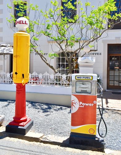 Juste derrière d'ancienne pompes à essence, j'aperçois maintenant des petites maisons de style géorgien, qui abritèrent autrefois l'épicerie de Matjiesfontein. Le café, qui a depuis remplacé ce commerce confectionne d'excellents gâteaux. Habitants et visiteurs n'ont donc pas perdu au change...En levant la tête en direction des réverbères ornant la rue Logan, je me dis qu'il était jadis malaisé d'allumer et d'éteindre ces lampes du temps où elles fonctionnaient grâce au gaz, lui-même fabriqué à partir d'une petite centrale à charbon installée au bord de la rivière. Des lampes directement importées de Londres par Logan père.