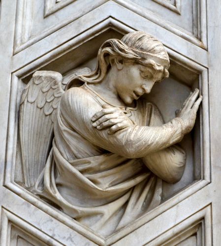 Ne passons pas non plus à côté du premier ange à droite du premier portail à droite du Duomo (façade principale de la cathédrale). Vous me suivez ? Cet ange des sodomites (ci-dessous) vous salue et déconcerte le visiteur tout à la fois car il fait de toute évidence un bras d'honneur. Certains y voient un message chiffré. Il est vrai qu'à Florence, la sodomie est depuis longtemps répertoriée, et pratiquée sur les rives de l'Arno (ou de l'Arnaud). J'ai un trou...comment cela s'écrit-il déjà ?
