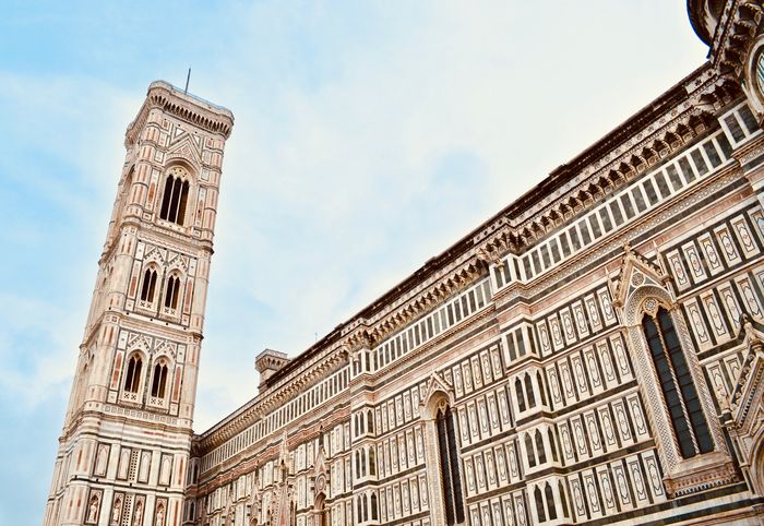 Au N°12 de la même rue se dresse toujours le Palais Nonfinito (ci-dessous) dont la construction, débutée en 1593 ne vit jamais la fin, d'où son nom. L'endroit abrite aujourd'hui le musée national d'Anthropologie qui renferme son lot de curiosités. Au bout de la Via Proconsolo se trouve le Duomo (deuxième photo), autre nom de la cathédrale Santa Maria del Fiore qui domine la cité avec son immense coupole. L'idée était alors de surpasser tout le monde et de bâtir une cathédrale aux dimensions démesurées, une ambition qui faillit s'avérer irréaliste puisque le Duomo, dont les travaux débutèrent en 1296, ne sera consacré qu'en 1436. Le campanile, qui fait partie de l'ensemble, nécessitera à lui seul trois architectes et le baptistère, dont les portes sont célèbres dans le monde entier, remonterait au...4è siècle !