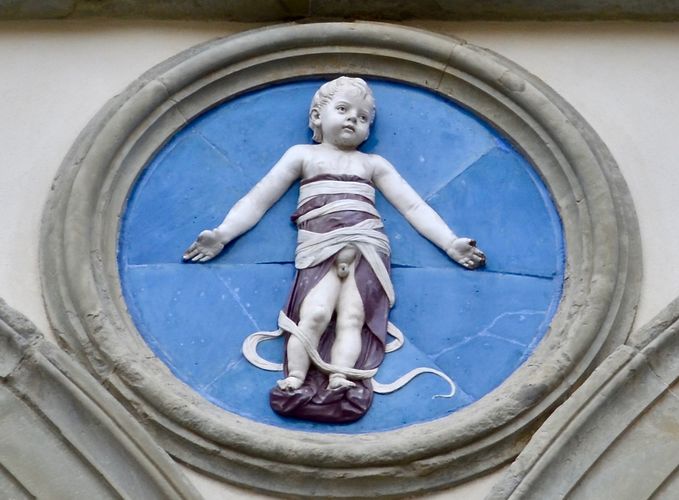 C'est en 1419 que la corporation florentine des artisans de la soie commanda à Brunelleschi l'hôpital des Innocents, premier orphelinat d'Europe, avec sa jolie loggia. Des médaillons en terre cuite furent rajoutés vers 1490 par Andrea della Robbia. Ces médaillons représentent des enfants emmaillotés. Une petite porte à tambour, la rota, qui est situé à l'extrémité gauche du portique, servit jusqu'en 1875 à déposer les enfants abandonnés, en pivotant sur elle-même et en permettant au donateur de conserver l'anonymat. Deux cloitres furent également dessinés par Brunelleschi dont un abrite un petit musée agrémenté des meilleurs œuvres de l'endroit (dont l'Adoration des Mages) dans la salle Ghirlandaio.