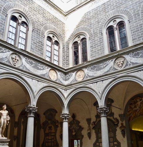 Je redescend à présent la Via Cavour jusqu'au Palazzo Medici-Riccardi (deuxième photo), nouvelle résidence de Cosme l'Ancien, dont l'édification fut confiée à Michelozzo. Les Médicis y vécurent de 1444 à 1540 avant de le revendre à la famille Riccardi. Son portail principal ouvre sur un splendide cortilé orné de médaillons et de copies de camées antiques transférés depuis au Musée degli Argenti. Sur place, on peut admirer la Capela dei Magi décorée des fresques de Benozzo Gozzoli.