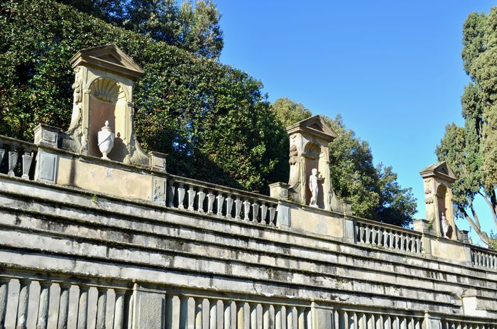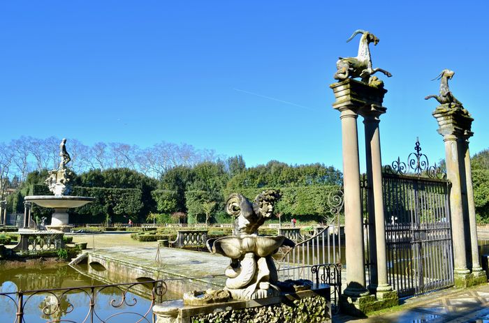 Parc historique de Florence, le Jardin de Boboli s'étend de la Porta Romana au Forte Belvedere. Bâti sur une colline, il est exceptionnel tant pour sa valeur historique que pour ses paysages, et ses collections de sculptures romaines et florentines datant des 16è et 17è siècle. L'endroit verra effectivement le jour en 1550 et sera modelé dans le style Renaissance. Ce style concerne le tout premier jardin immédiatement adjacent au Palais Pitti. Puis, peu à peu, ledit jardin s'étendit au fur et à mesure de l'aménagement de nouvelles parcelles comme, par exemple, le long de l'axe parallèle au palais où seront créées des allées recouvertes de gravillons, des nouveaux plans d'eau ainsi que des petites îles, des fontaines avec des nénuphars et des grottes. Statues et « fabriques » (entendez par là des constructions comme la Kaffeehaus, un café qui fut établi en 1776 par Zanobi del Rosso dans un style rococo très romantique) participent à l'enchantement des visiteurs qui peuvent ainsi jouir du magnifique panorama de la cité qui s'offre à eux.