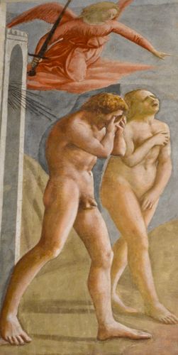 La chapelle Brancacci doit surtout sa célébrité grâce aux innovations du jeune Masaccio, qui n'hésitera pas à représenter à sa manière la souffrance exacerbée sur le visage d'Eve lorsque celle-ci sera chassée du paradis avec Adam (ci-dessous).D'après Vasari, une majorité de grands peintres et de sculpteurs de la Renaissance défilèrent ici pour étudier les pratiques nouvelles de l'élève de Masolino. Sans doute par excès de pudeur, on peindra plus tard des rameaux d'olivier sur le sexe d'Adam et d'Eve. Cette « dissimulation » ne sera que temporaire puisque l'un et l'autre retrouveront leur complète nudité lors de la restauration de la fresque entre 1984 et 1988. Une œuvre d'autant plus remarquable que l'on doit au brio de son clair-obscur et à l'application des lois de la perspective découvertes par Filippo Brunelleschi.