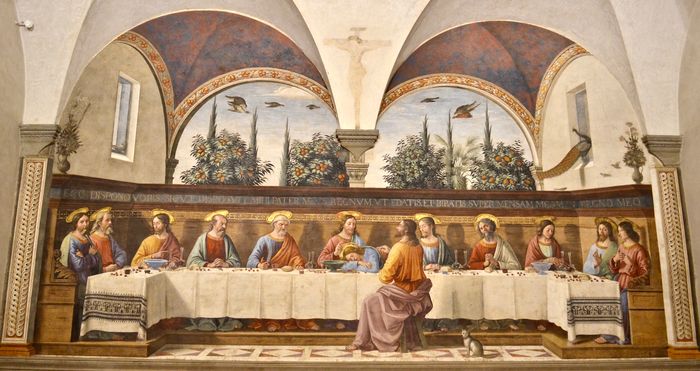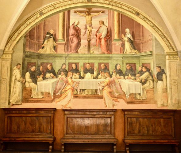 Le Grand réfectoire me permettra d'admirer le Cenacolo de Sogliani, visible ci-dessous, qui fut peinte en 1536 par Giovanni Antonio Sogliani. Point de Cène dans le cas présent mais une représentation des frères dominicains attablés autour du fondateur de l'ordre Saint Dominique de Guzman.