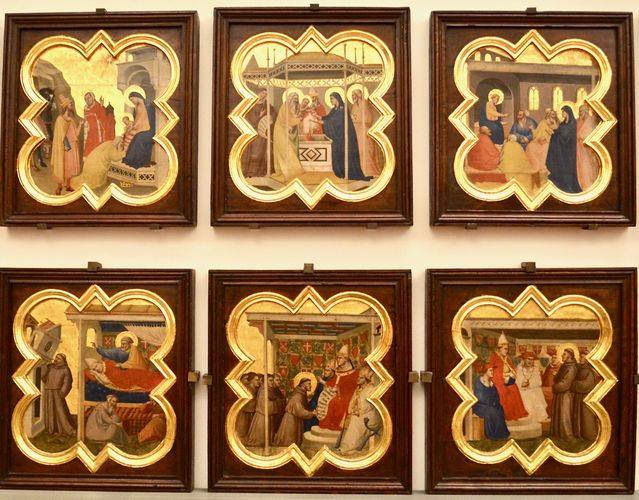 Deux autres salles, plus petites, ne doivent pas être oubliées : la Sala di Giotto e della su scuola, ou Salle des Giottesques (œuvres du maitre Giotto), qui présente d'irrésistibles médaillons (ci-dessous en photo) et la Sala di Giovanni da Milano e degli Orcagna (et son superbe Couronnement de la Vierge, sur la deuxième photo).