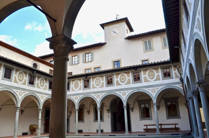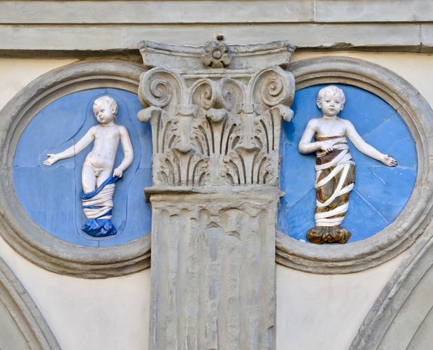 L'Hôpital des Innocents , un des premiers orphelinats d'Europe, fut commandé à Filippo Brunelleschi en 1419 par la corporation des métiers de la soie. L'endroit, destiné à l'accueil des enfants abandonnés, sera inauguré en 1445 et offre encore aujourd'hui sa magnifique façade ornée de médaillons en terre cuite (ci-dessous) représentant des enfants emmaillotés (innocents). Ces médaillons furent réalisés par Andrea della Robbia en 1463, artiste ayant joué un rôle primordial dans la diffusion de l'art de la terracotta invetriata.
