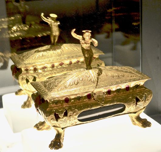 Depuis le cloitre des femmes, un escalier me conduit jusqu'à la galerie d'art (ci-dessous en photo) qui présente une sélection des œuvres que l'hôpital a rassemblées au fil des siècles. J'y admirerai plusieurs peintures florentines de style Renaissance et des œuvres d'Andrea della Robbia, de Botticelli et de Ghirlandaio. A l'étage inférieur, le musée de l'endroit présente un reliquaire des saints innocents (troisième photo), une œuvre datant de 1615.