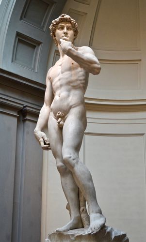 Musée national, la Galleria dell'Accademia a trouvé refuge dans les bâtiments de l'Académie du dessin de Florence créée en 1562, vénérable institution qui vit le jour sous l'impulsion de Cosme 1er. L'endroit que je visite cette fois abrite depuis 1873 certaines œuvres majeures comme le « David » de Michel-Ange (en photo ci-dessous), que toute belle-mère rêverait d'avoir pour gendre. Je m'amuserai beaucoup à observer ces dames en train d'observer le colosse sous toutes les coutures en le déshabillant du regard malgré que le jeune homme s'affiche déjà dans le plus simple appareil. Et ne me demandez pas pourquoi cette sculpture est devenue depuis l’emblème du musée.