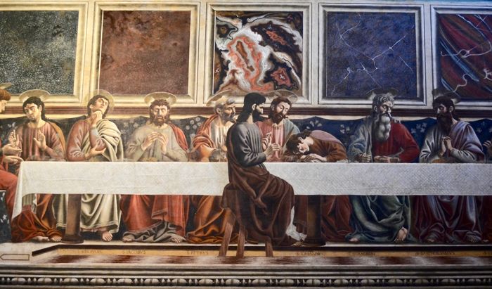 Autre plaisir pour les yeux : le Cenacolo di Sant'Apollonia, réfectoire du couvent devenu depuis musée municipal offrant des œuvres peintes originales comme « la Cène » d'Andrea del Castagno et autre peintures. Elève de Masaccio, Andrea del Castagno décorera la salle au milieu du 15è siècle en y apposant sur le mur du fond sa superbe fresque : placé seul devant la table, tranchant sur le blanc de la nappe et cassant l'équilibre de la composition, l'artiste nous décrit un Judas au visage creusé par le clair-obscur, sorte de créature symbolisant le mal. Dédié à Sainte Apolloniale, le couvent fut fondé en 1339 par Piero di Ser Mino pour les moniales camaldules. Quant aux peintures, elles ne seront accessibles qu'à la suppression des ordres monastiques en 1800. Et le lieu d'avoir été depuis investi par les étudiants de l'université de Florence. Au moment de mon passage, c'est sereinement que je visiterai cet endroit alors désert.