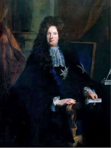 Vinrent ensuite les Croissy, Torcy et Villacerf : Charles Colbert, marquis de Croissy (et frère du Grand Colbert), en photo ci-dessus, fera une remarquable carrière diplomatique et ministérielle. Il représentera ainsi Louis XIV en 1668, au congrès d'Aix-la-Chapelle, dont le traité mettra un terme à la guerre de Dévolution avec l'Espagne, puis en 1678, au congrès de Nimègue dont les traités multilatéraux mettront fin à la guerre de Hollande. Secrétaire d'Etat aux Affaires étrangères de 1679 à sa mort, commandeur et grand-trésorier des ordres du roi entre 1690 et 1696, Charles vivra à Paris dans l'hôtel Tubeuf, rue Vivienne, une résidence dont il fera l'acquisition en 1688. Son fils, Jean-Baptiste Colbert, marquis de Torcy, sera également Secrétaire d'Etat aux Affaires étrangères, mais aussi chancelier, garde des sceaux, grand-trésorier des ordres du roi et membre de l'Académie royale des Sciences. Il sera enfin un fidèle participant aux fêtes données par la duchesse du Maine, à Sceaux, et sera même membre de l'ordre de la Mouche à miel créé par la princesse en 1703. Une parodie d'ordre de chevalerie conçue pour attacher à sa personne la cour qu'elle avait rassemblée au château de Sceaux.