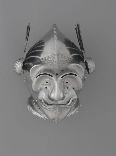 L'article 2 de la convention d'armistice autorise l'occupation de 55% du territoire de la métropole, sans toutefois préciser les modalités de cette occupation ni de tracé de carte précis. La zone « occupée » (zone « nord ») incorpore toute la bande littorale atlantique, laquelle deviendra interdite en 1941 au retour des réfugiés. Même problématique pour les populations vivant à l'origine à l'intérieur d'une zone nord-est comprise entre la Somme et la Bourgogne. L'armistice franco-italien, lui, prévoit la mise en place d'une zone occupée bien plus modeste, concernant 800 km2 et quelques 28000 habitants située à l'Est de la zone non occupée, et englobant les fortifications de la ligne Maginot des Alpes. La ligne de démarcation entre les deux zones, qui coupe quant à elle treize départements, devient rapidement pour l'occupant allemand une frontière politique, social et économique dans la mesure où le transport de ressources entre les deux zones est interdit. Tout au long de l'exposition, j'aurai le loisir de consulter archives filmiques, cartes et émissions de radio de l'époque, affiches et titres de journaux, afin de m'aider à imaginer ce que pouvait être la vie d'un Français en zone occupée en 1940. Je prendrai aussi connaissance des contrôles effectués par l'armée allemande, de la censure culturelle (avec la présentation d'un exemplaire de la liste Otto des ouvrages interdits) et des premières actions de résistance (grâce au prêt exceptionnel d'une lettre originale de Jean Moulin par le Musée de la Libération de Paris). Autre objet, insolite celui-là : l'armet du comte palatin Wolfgang (en photo ci-dessous), témoignant des pillages dont les collections du musée de l'Armée seront victimes dès les premiers temps de l'Occupation.