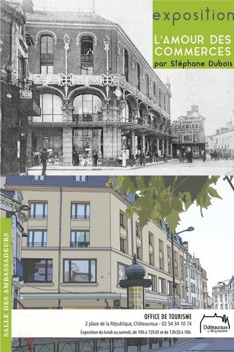 L'exposition « L'amour des commerces » conçue par Stéphane Dubois mêle une cinquantaine de photographies noir et blanc d'hier avec des illustrations (dessinées et colorisées à la main et d'après photos) d'aujourd'hui pour montrer l'évolution des locaux commerciaux du centre-ville. L'illustrateur, qui n'en est pas à sa première tentative et s'est installé à Châteauroux en 2012, fut impressionné par la richesse historique et patrimoniale de la ville. A la fois passionné de dessin, de photographie et d’histoire, Stéphane, qui est par ailleurs diplômé de l'école de l'image des Gobelins (Paris) a pu exprimer son talent à plusieurs reprises depuis les années 1980 : réalisation de la bande dessinée série « Mérite Maritime » (éditée aux Editions Casterman) en 1987-1997, participation à la conception du dessin animé « Papyrus, Cédric, Witch, Yakari, pour Titeuf le film » (1998-2012) et différentes expositions depuis 2018 : Aquarelles Rock, La Petite rue Grande et L'amour des Commerces.