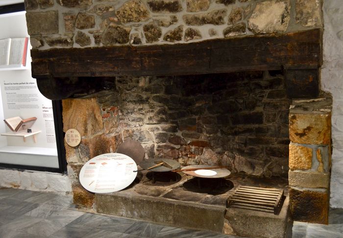 L'exposition nous révèle également le chemin parcouru par la crêpe bretonne du paysan jusqu'au touriste : Il faut attendre l'époque dite moderne (15e-18e siècles) pour qu’apparaissent les premiers témoignages écrits sur l'utilisation du rozell, ce râteau utilisé pour étaler la pâte. C'est à cette époque que le sarrasin fait son apparition dans la région et trouvera dans la crêpe son plus fervent soutien. Crêpes et galettes de sarrasin prennent ainsi racine dans l'alimentation des populations rurales, puis des milieux ouvriers. Plusieurs siècles seront en revanche nécessaires avant que le touriste n'apprécie à sa juste valeur ce mets gastronomique. Les premières traces écrites mentionnant la culture du sarrasin dans notre pays remontent donc au 15e siècle, mais des traces de pollens attestent de sa présence dès ...l'Âge de Fer. A partir du siècle suivant, cette plante qui s'adapte bien aux sols acides croit rapidement dans le massif armoricain, même si sa culture est moins valorisée que celles du froment ou du seigle. Moins commercialisé, il sera aussi moins taxé et donc plus abordable auprès des populations pauvres qui en produiront pour leur propre consommation. Au point d'en faire leur principale source de nourriture dès le 17e siècle dans le Grand Ouest. Moins adaptée à la fabrication du pain, la farine de sarrasin est surtout utilisée en bouillie, en crêpes et en galettes. Et paradoxalement, c'est l'essor de la métallurgie à partir du 16e siècle qui va venir au secours de la crêpe, en permettant la production de poêles, certains parlant alors de galettières en fer, d'autres de simples plaques de fer. Et les galletières en fonte d'apparaitre à leur tour à la fin du 18e siècle. De même, certains foyers traditionnels bretons seront équipés de « poêle à crêpes », sorte de cuisinière en pierre, principalement utilisé pour confectionner le mets. Sa forme en double-foyer permettait de cuire simultanément deux crêpes, surtout en Basse-Bretagne. On en répertoria quelques exemplaires sur la Presqu'île de Crozon, dans les Monts d'Arrée et dans la région de Quimperlé, souvent retrouvés à l'intérieur d'anciens logis désaffectés, d'étables ou de laiteries...La plupart datant du 19e siècle.
