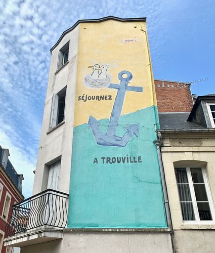 Soraya et moi nous sommes rendus mi-août à Trouville-sur-Mer, charmante petite station balnéaire du Calvados (14) qui fait face à sa voisine célèbre entre autres pour son Festival du cinéma américain. Débarqués du Train Nomad à la gare terminus de Deauville, nous franchissons le pont qui enjambe la Touques, petit fleuve côtier, pour nous retrouver une centaine de mètres plus loin au cœur de cette petite ville à la fois authentique, chaleureuse et familiale, que l'on surnomme ici « La Reine des Plages ». Et de remonter le boulevard Fernand Moureaux (jadis maire de l'endroit et heureux propriétaire de Suze, la fameuse liqueur de gentiane apéritive) déjà bondé d'estivants en ce début de matinée jusqu'à notre hôtel pour y déposer nos bagages.