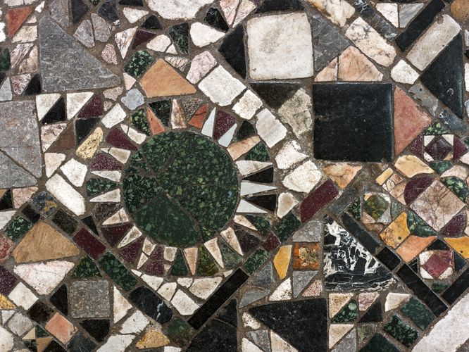 Le pavement en opus sectile qu'il nous est donné d'admirer à l'abbatiale de Saint Benoit est le plus somptueux de France. Il doit ses origines à l'abbé Gauzlin, présumé demi-frère du roi Robert Le Pieu : l'homme mit en œuvre au 11è siècle un programme monumental pour glorifier les reliques de saint Benoit dont les faits les plus marquants demeurent la tour Porche et le pavement opus sectile. Importé de la région de Ravenne (Italie), ce dernier est constitué de quinze roches différentes tandis que l'opus sectile, technique héritée de l'Antiquité, vise à créer des pavements ou des décors muraux par découpe puis assemblage de fragments de marbre et de pierres de couleurs. Les décors sont ainsi constitués de motifs géométriques (triangles, disques, quadrilatères) et reposent sur des effets d'opposition de couleurs et même de perspective. Histoire, quand tu nous tiens...