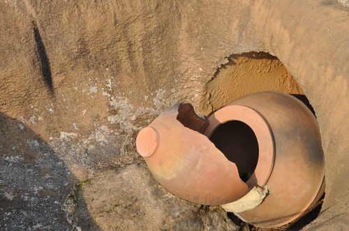 Pour enterrer un corps, on creusait d'abord un trou de 2 mètres de profondeur et de largeur. Puis un second trou sur l'un des côtés, permettant d'y insérer l'urne funéraire. L'urne était refermée puis scellée une fois la cérémonie terminée. Et le trou était rebouché. Cette méthode est unique et couramment observée au nord de l'île de Kyushu.
