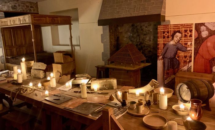 La salle du chantier nous dévoile les secrets de la construction de ces dizaines, voire centaines de cathédrales qui fleurirent au royaume de France à l'époque gothique. Ces édifices religieux furent le fruit de la ferveur des bâtisseurs, de leur enthousiasme et de leur foi. Les chantiers prenaient place en tous lieux et pouvaient durer plusieurs années. Ils étaient le résultat d'une collaboration entre l'évêque, les chanoines et le maître d'oeuvre (comme nous l'avons vu plus haut) et la construction de la cathédrale était réalisée par des techniciens compétents. Une hiérarchie stricte existait d'ailleurs entre les différents métiers, dont les sculpteurs, les tailleurs de pierre, les dessinateurs, les charpentiers, les menuisiers, les couvreurs, les maçons, les forgerons, les verriers ou les carriers....ces ouvriers étant placés sous l'autorité d'un proviseur, personnage choisi par les chanoines pour diriger les travaux, acquérir les matériaux, tenir les comptes et engager des ouvriers hautement qualifiés.