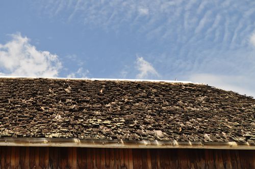 Pour recouvrir les toits ( et même aussi les murs!) , on utilise des bardeaux, un genre d'ardoises en bois qui a l'avantage d'offrir une excellente protection thermique, particulièrement l'été.