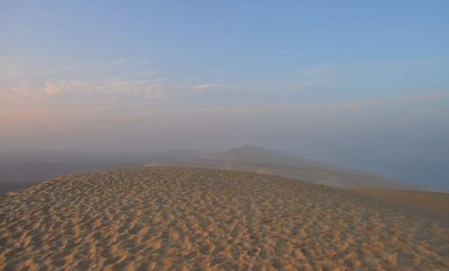 Nous remontons progressivement la côte en direction de la pointe du Cap Ferret et laissons le phare à notre droite. Puis nous mettons le cap sur la dune du Pyla. S'étendant sur une longueur de près de 3 kilomètres et une largeur de 500 mètres, la dune du Pyla reste la dune la plus haute d'Europe avec ses 117 mètres. Mobile, elle avance continuellement en gagnant du terrain vers l'intérieur des terres, en direction de la forêt. On évalue son volume à environ 60 millions de mètres cube de sable.