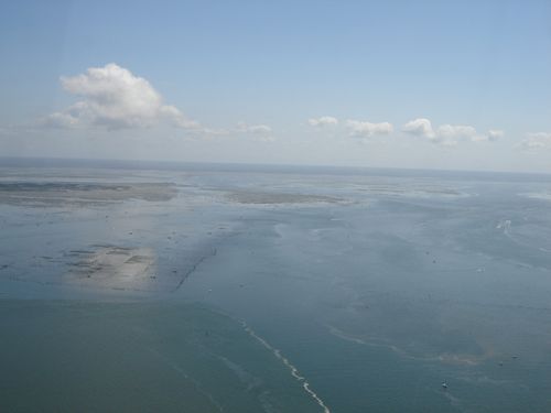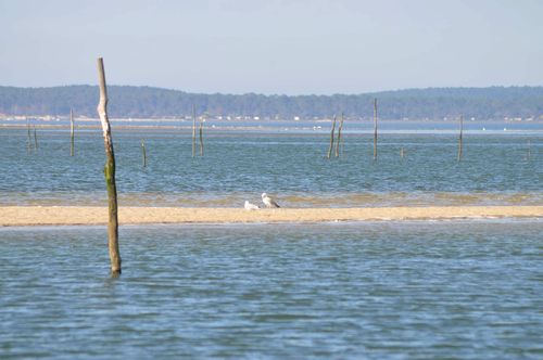Nous suivons un chenal, qui , lui ,reste praticable à tout moment. Ce sont chaque jour 370 millions d'eau qui sont échangés entre le bassin et l'océan atlantique. Les oiseaux marins sont nombreux autour de nous, il faut dire que le bassin d'Arcachon offre un climat doux avec un ensoleillement important toute l'année ainsi qu'une abondance de nourriture favorable aux oiseaux migrateurs.