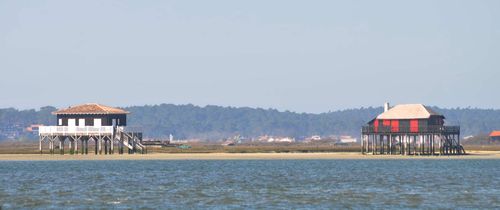 Tiens, nous apercevons maintenant les cabanes tchanquées sur notre gauche. Encore une curiosité du bassin. Ces cabanes, situées sur le domaine public maritime, appartiennent à l'Etat français. Depuis le XIX ème siècle, deux cabanes tchanquées font partir du paysage du bassin, populairement surnommées « cabanes à échasses ». La première fut édifiée en 1883, par Martin Pibert et permettait la surveillance des parcs à huitres tout autour. Elle sera détruite par une tempête en 1943. Deux ans plus tard, un Arcachonnais bâtit une autre cabane à quarante mètres de l'ancienne, afin de l'utiliser comme lieu de plaisance. La deuxième cabane fut construite au début des années cinquante. C'est aujourd'hui le Conservatoire du littoral et l'Etat qui en sont devenus les propriétaires mais la gestion en a été confié à la municipalité de La Teste de Buch.On ne peut donc pas devenir propriétaire d'une d'une cabane tchanquées mais on peut en être locataire pour une durée de cinq années renouvelable en détenant une autorisation d'occupation temporaire. Les titulaires doivent être en totale conformité avec un cahier des charges architectural pour ne pas porter atteinte au patrimoine. Lorsqu'une cabane tchanquée est vacante, une déclaration est faite à la mairie et dans la presse locale afin d'informer le public. Les personnes intéressées pour louer la cabane déposent une demande d'autorisation provisoire. Les titulaires de l'autorisation doivent respecter certaines règles: Occuper la cabane tchanquée à titre personnel ( il est interdit de la sous-louer), protéger le patrimoine architectural et son environnement, ne pas résider en permanence dans la cabane, ne pas exercer d'activité commerciale sur l'île aux oiseaux, ne pas faire de travaux à l'extérieur de la cabane ni autour de celle-ci.