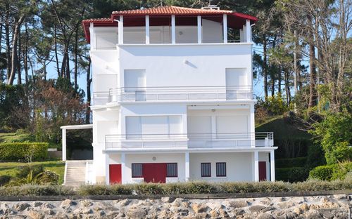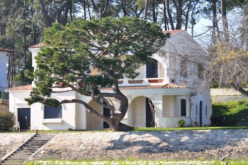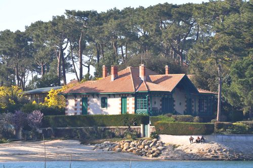 C'est l'occasion de découvrir côté mer ces cabanes en bois d'ostréiculteurs, ces petites plages , ces villas magnifiques qui ont parfois une histoire et se sont invitées dans le paysage. On découvre ainsi l'Hôtel Chanteclaire (1ère photo ci-dessous) où Jean Marais et Jean Cocteau descendaient en vacances et se baignaient nus le matin dans le bassin, ce qui créait une certaine émotion aux alentours. Puis la villa construite par Le Corbusier ( 2ème photo ci-dessous) , et la Villa de La Madeleine (3ème photo ci-dessous) qui fut la première villa construite sur la presqu'ile du Cap Ferret.