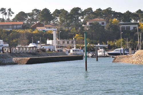 Nous arrivons bientôt devant l'entrée du seul port entrant dans le village et situé dans la presqu'ile du Cap Ferret : Le petit port de La Vigne, construit en 1960 sur l'emplacement d'anciens réservoirs à poissons. Le créateur de ce port privé avait, dit-on, trouvé l'astucieuse idée de vendre les emplacements...27 fois! Cet intéressant concept lui permit de partir couler des jours heureux au Vénézuela. Aujourd'hui, les 300 anneaux de ce petit port ne suffisent plus à répondre à la demande sans cesse croissante du milieu plaisancier.