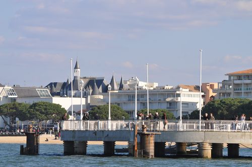 Le pilote du bateau qui connaît bien sa région et donne des informations détaillées pendant la croisière nous annonce maintenant Andernos-les-bains à l'horizon. Site préhistorique, la bourgade gallo-romaine fut envahie par les Barbares, et l'on peut trouver des vestiges du côté de l'église Saint Eloi. Le château d' Andernos , classé bien national, n'est situé qu'à un kilomètre du bassin et de l'église. C'est en 1898 qu'Andernos a pris la dénomination « les-bains ».