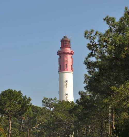 J'arrive enfin au Cap Ferret. Le phare domine la cime des forêts de pins. Tour tronçonnique en maçonnerie blanche, ce phare est automatisé depuis 1995. Le premier phare fut construit en 1840, et fut électrifié en 1929. Mais les Allemands passèrent par là et le firent sauter en 1944. Rebâti en 1949, il mesure aujourd'hui 52 mètres de haut, et est ouvert au public. Il signale toutes les cinq secondes de son éclat rouge l'entrée du bassin d'Arcachon et ses passes. Une galerie d'écrans permet aux visiteurs de comprendre le fonctionnement des phares et leur utilité. Il vous faudra gravir 258 marches avant de jouir d'un panorama unique à son sommet. D'un côté, vous admirez le bassin d'Arcachon, et de l'autre, la Côte d'Argent. A votre retour, un film « Le veilleur de mer » vous est proposé qui raconte l'histoire d'un marin revenu au Cap Ferret après avoir parcouru les mers du monde.