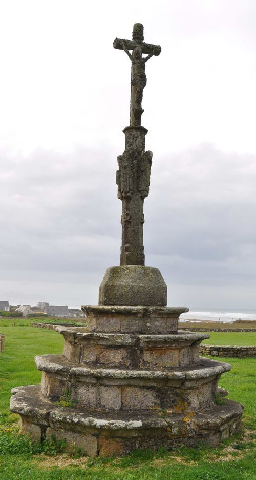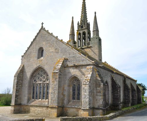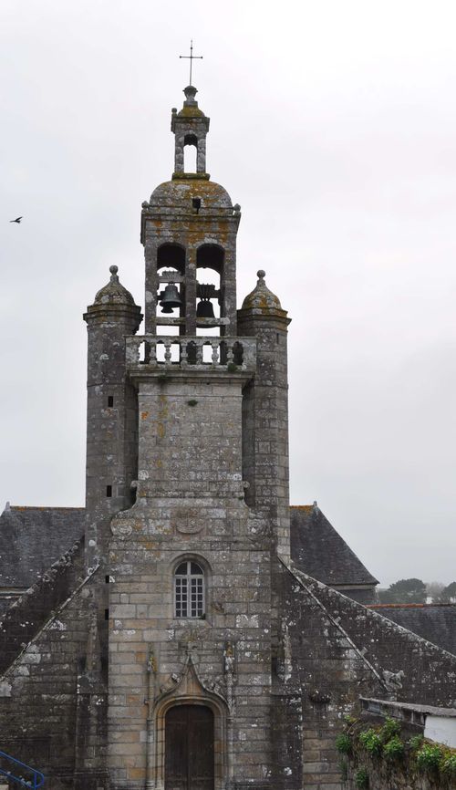 Pour me rendre à la Pointe de Penmarc'h, je passe par Penmarc'h et photographie l'église Saint-Nonna , construite en 1508. Son clocher carré s'inspire de celui de Quimper mais reste à ce jour inachevé. J'aime les vieilles pierres et j'apprécie ces sculptures de bateaux apposées sur le fronton de la porte de cette église par les commanditaires de ce lieu religieux.