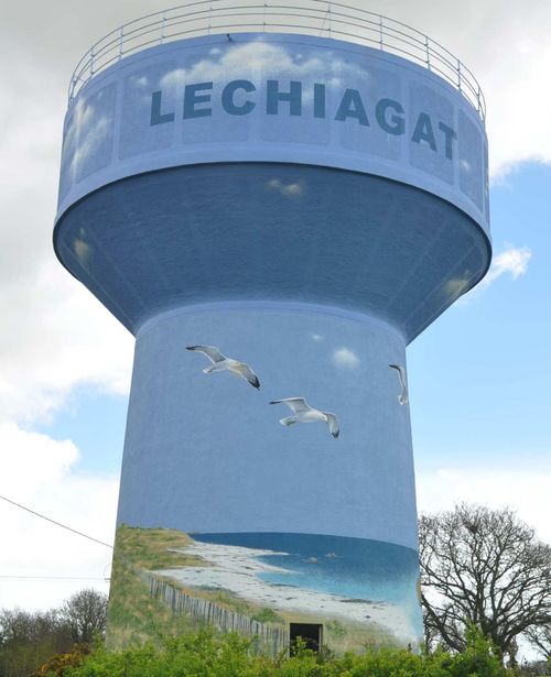 En Bretagne, on aime la couleur, peut être pour égayer le paysage lorsque le temps est gris. Le château d'eau de Lechiagat arbore une superbe peinture qui représente des paysages locaux.